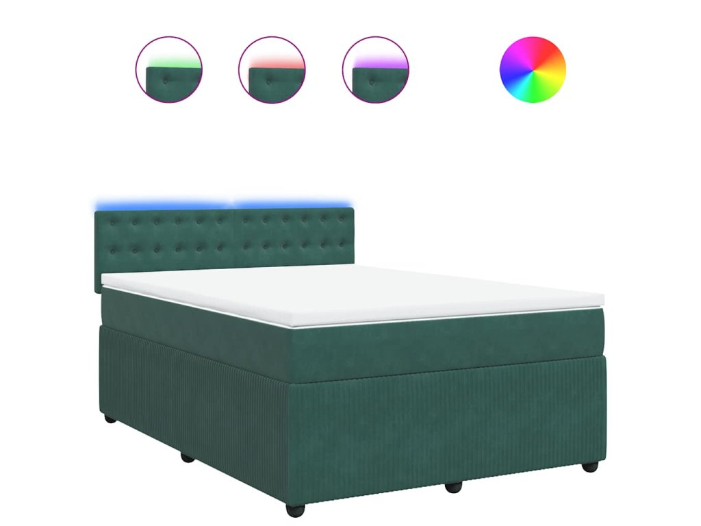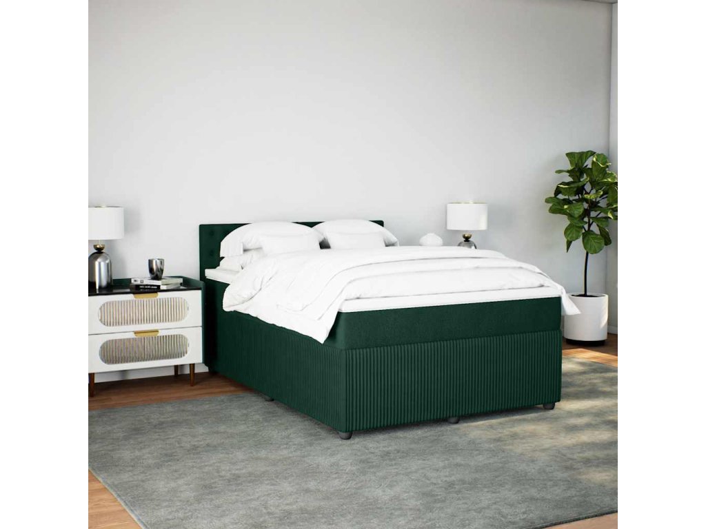 Multidom Posteľný rám boxsping s matracom tmavozelený 140x190 cm zamat