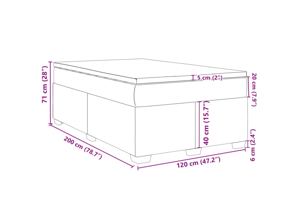 - Rozmery: 120 x 200 x 20 cm (Š x D x V)