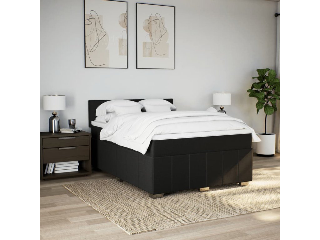Multidom Posteľný rám boxspring s matracom čierny 160x200 cm látka