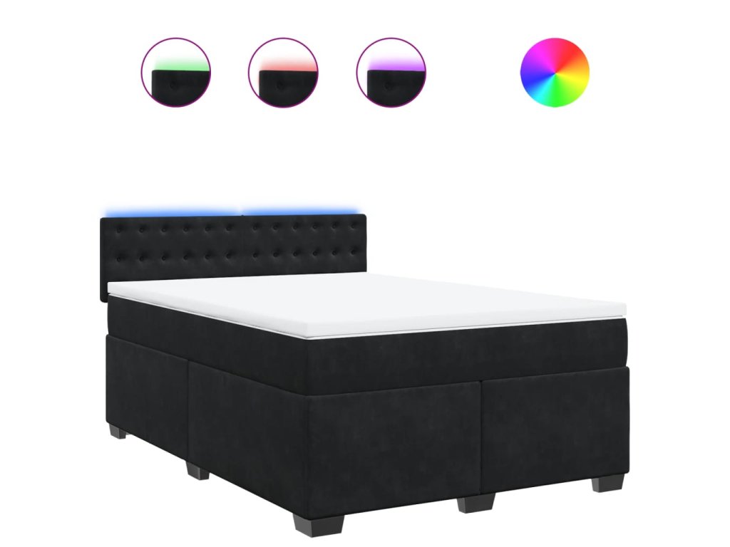 Multidom Posteľný rám boxspring s matracom čierny 160x200 cm zamat