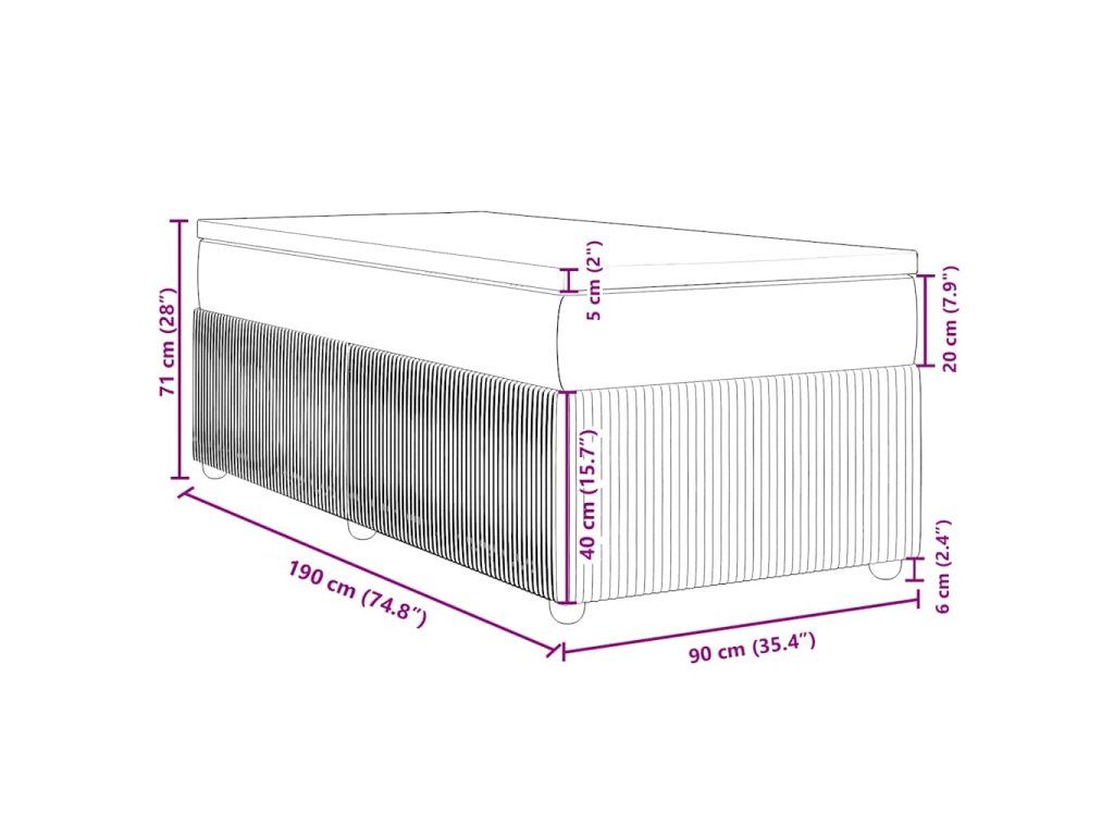 - Rozmery: 90 x 190 x 20 cm (Š x D x V)