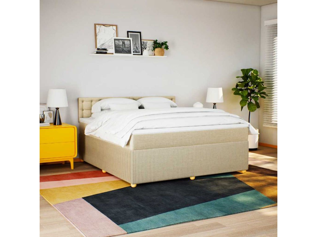 Multidom Posteľný rám boxspring s matracom krémový 180x200 cm látka