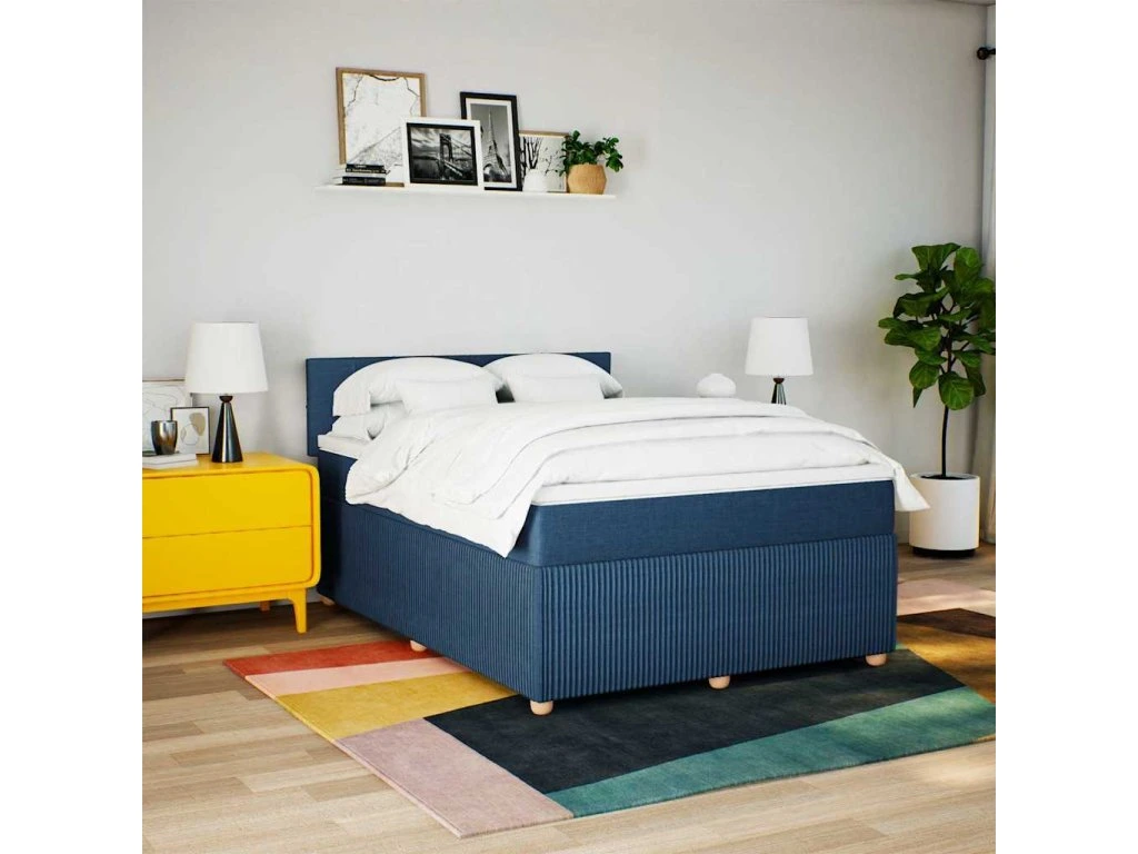 Multidom Posteľný rám boxspring s matracom modrý 140x200 cm látka