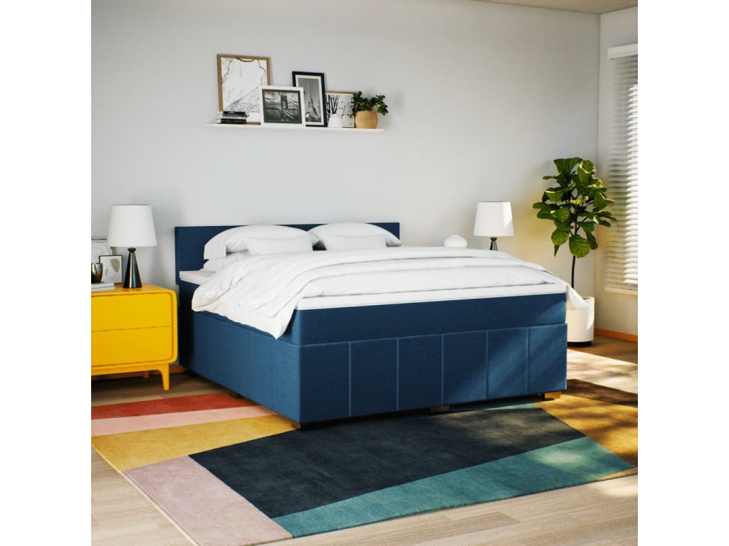 Multidom Posteľný rám boxspring s matracom modrý 180x200 cm látka