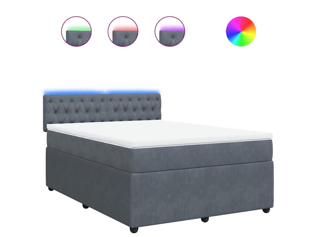 Multidom Posteľný rám boxspring s matracom tmavosivý 160x200 cm zamat