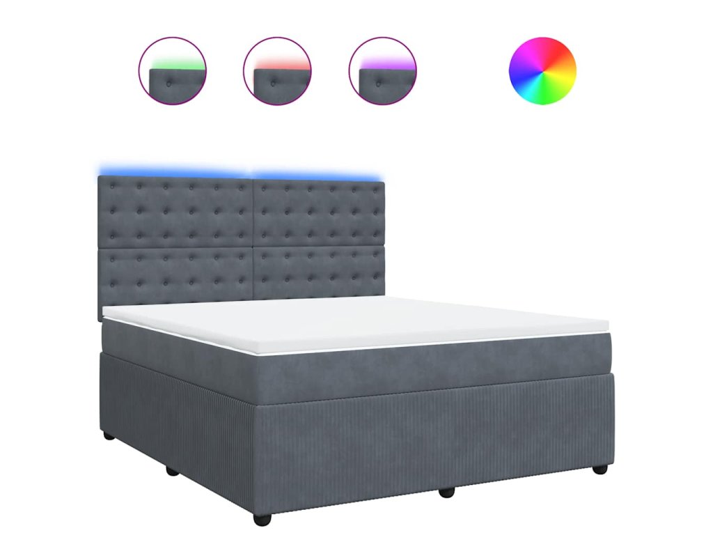 Multidom Posteľný rám boxspring s matracom tmavosivý 180x200 cm zamat