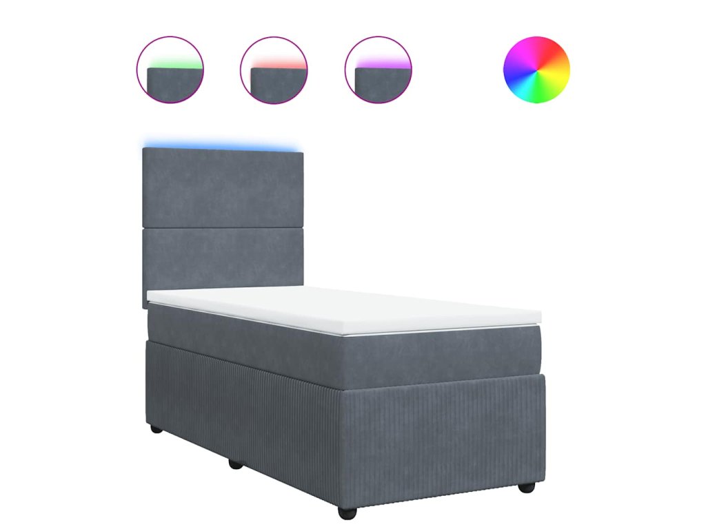 Multidom Posteľný rám boxspring s matracom tmavosivý 80x200 cm zamat