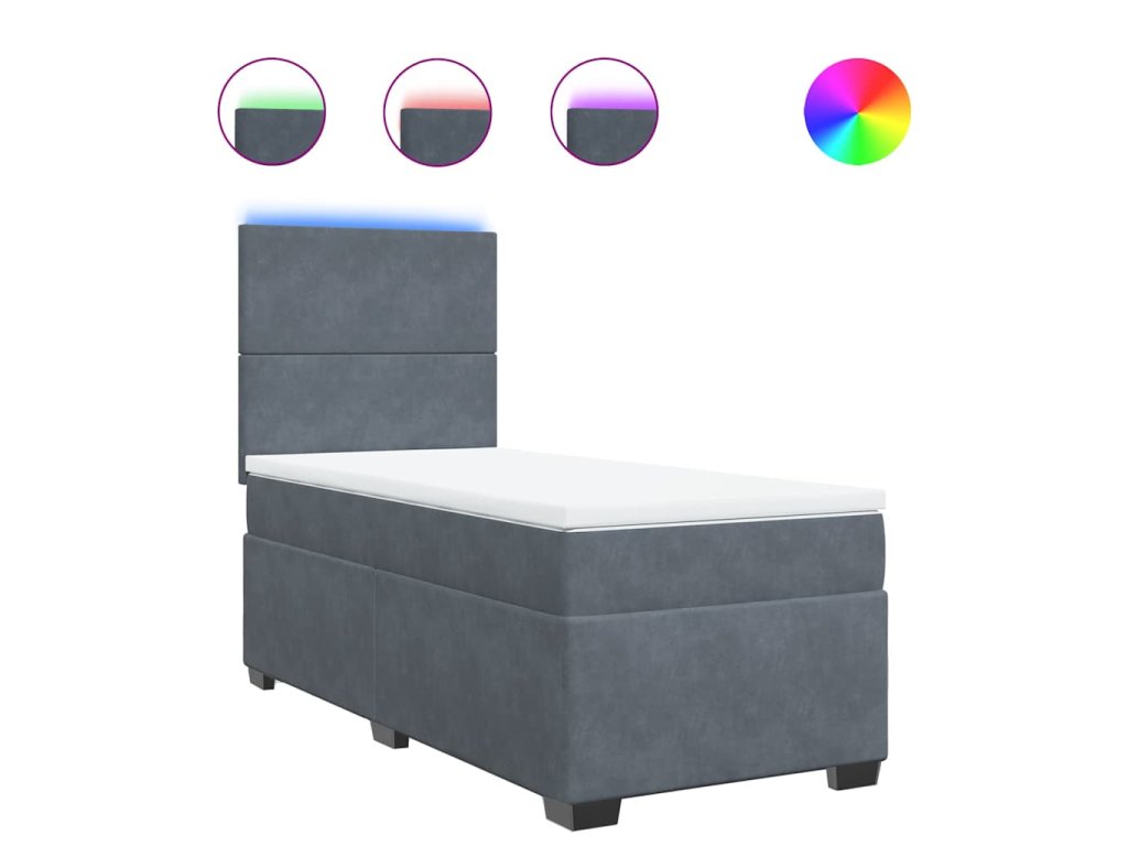 Multidom Posteľný rám boxspring s matracom tmavosivý 90x200 cm zamat