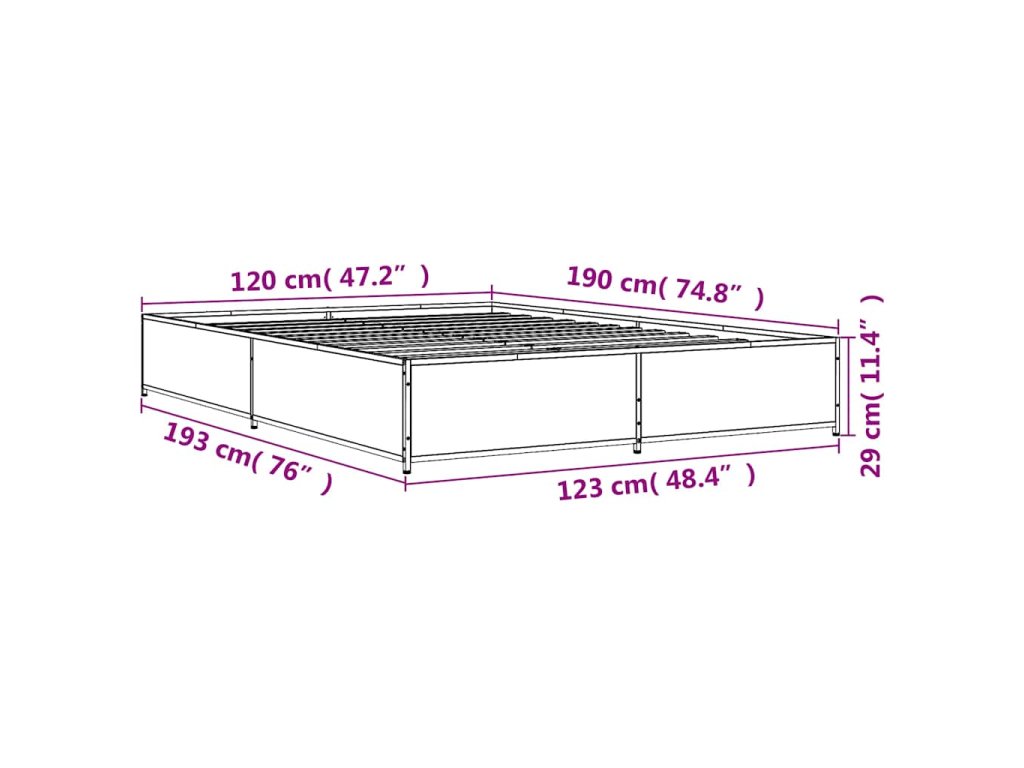 Multidom Posteľný rám čierny 120x190 cm kompozitné drevo a kov