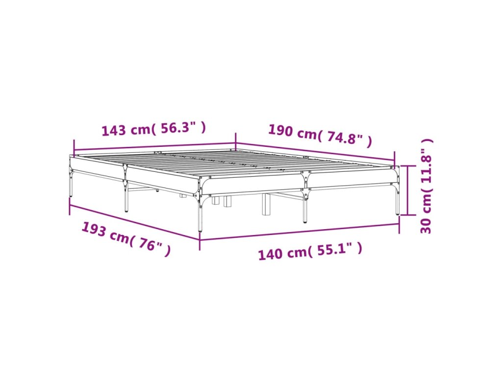 Multidom Posteľný rám čierny 140x190 cm kompozitné drevo a kov