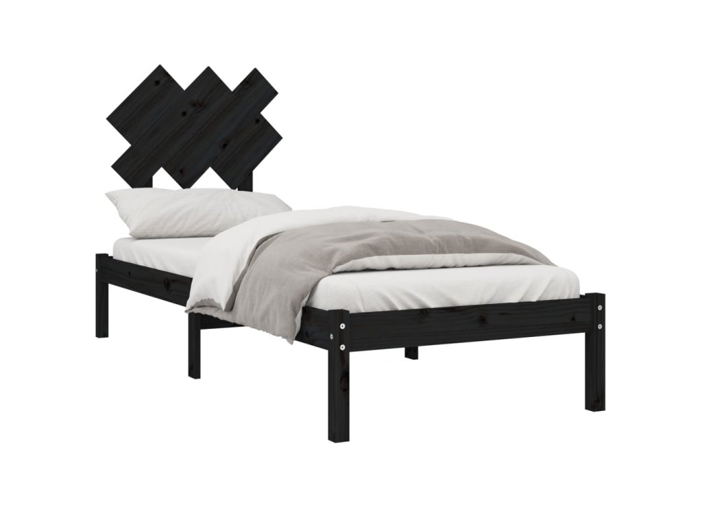 Multidom Posteľný rám čierny 75x190 cm malé jednolôžko masívne drevo