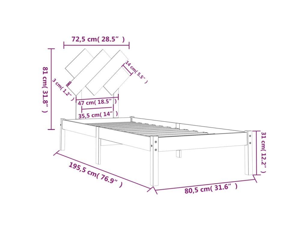 - Rozmery rámu postele: 195,5 x 80,5 x 31 cm (D x Š x V)