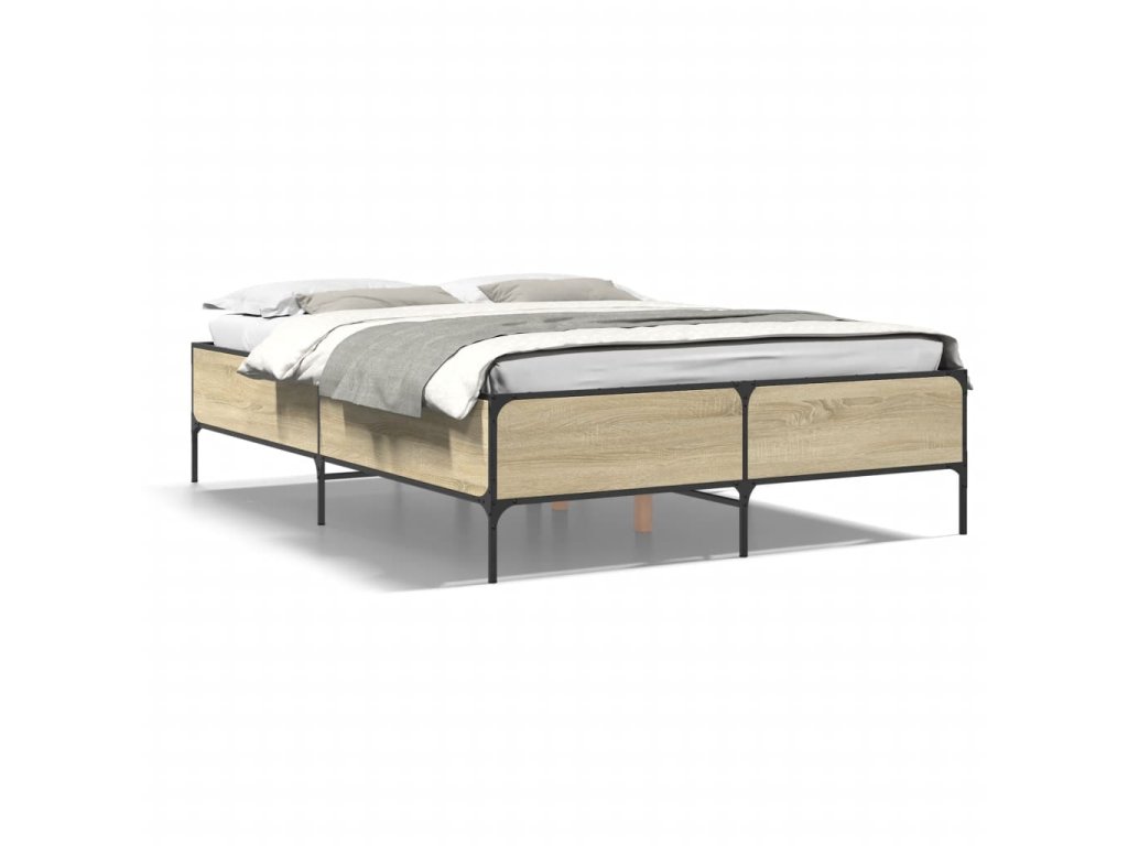 Multidom Posteľný rám dub sonoma 135x190 cm kompozitné drevo a kov