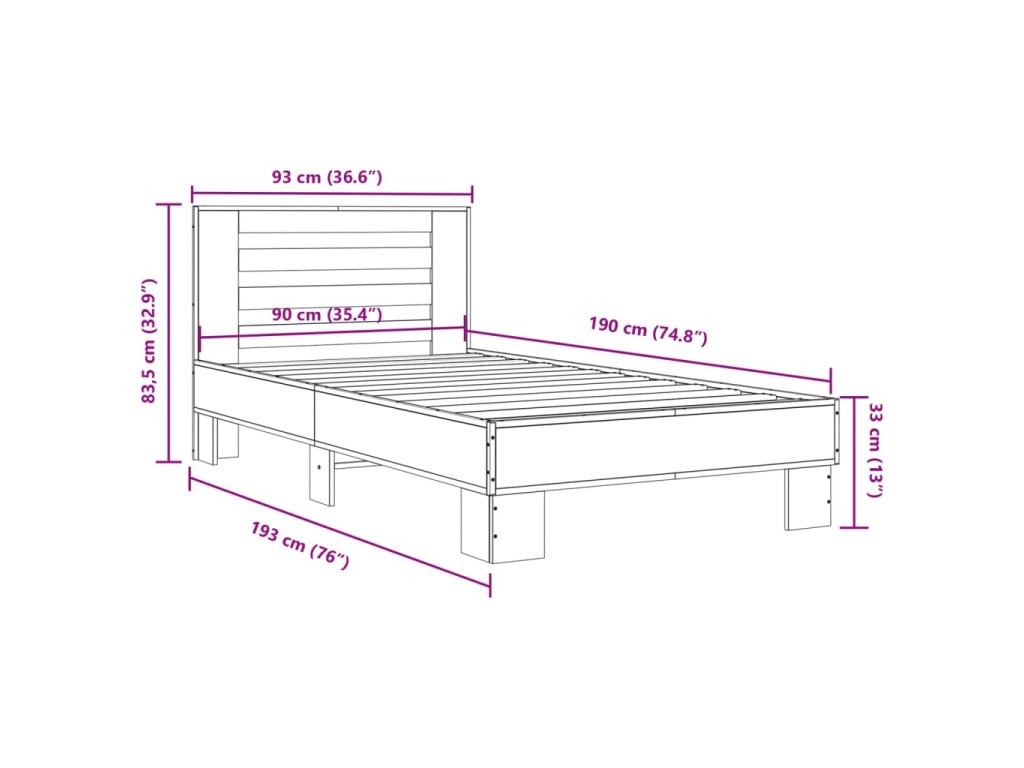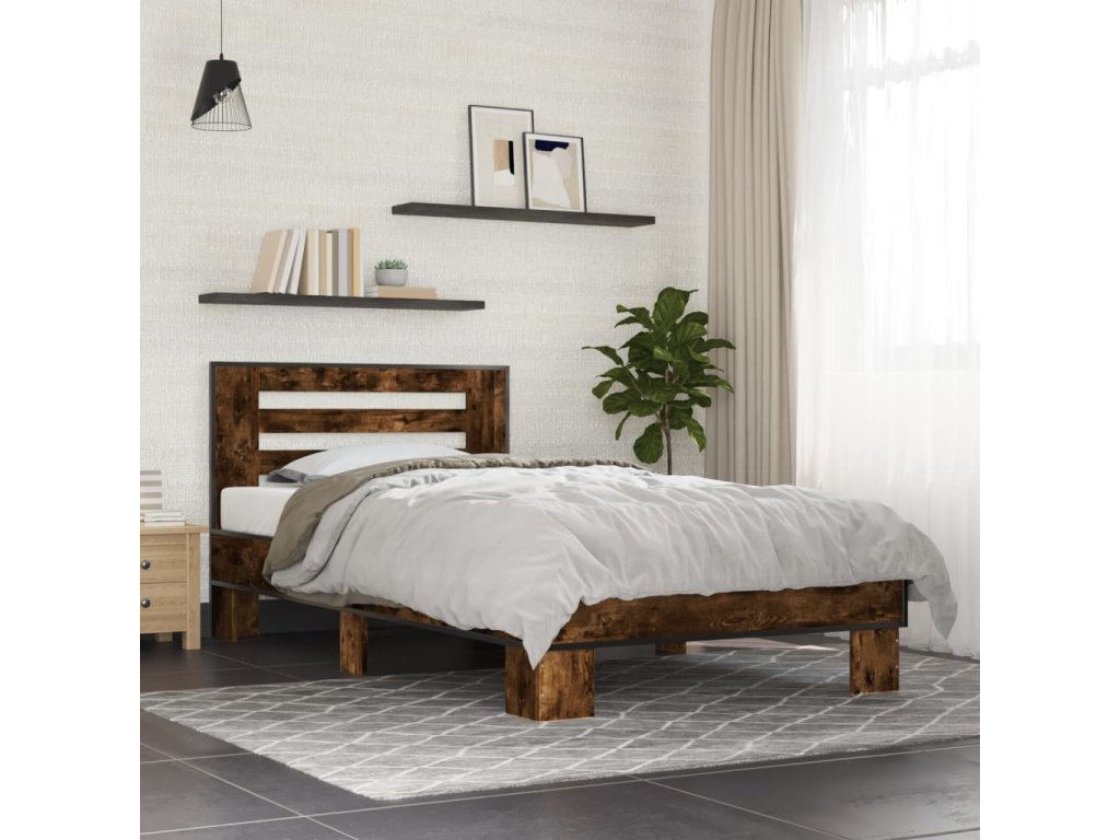 Multidom Posteľný rám dymový dub 90x190 cm kompozitné drevo a kov