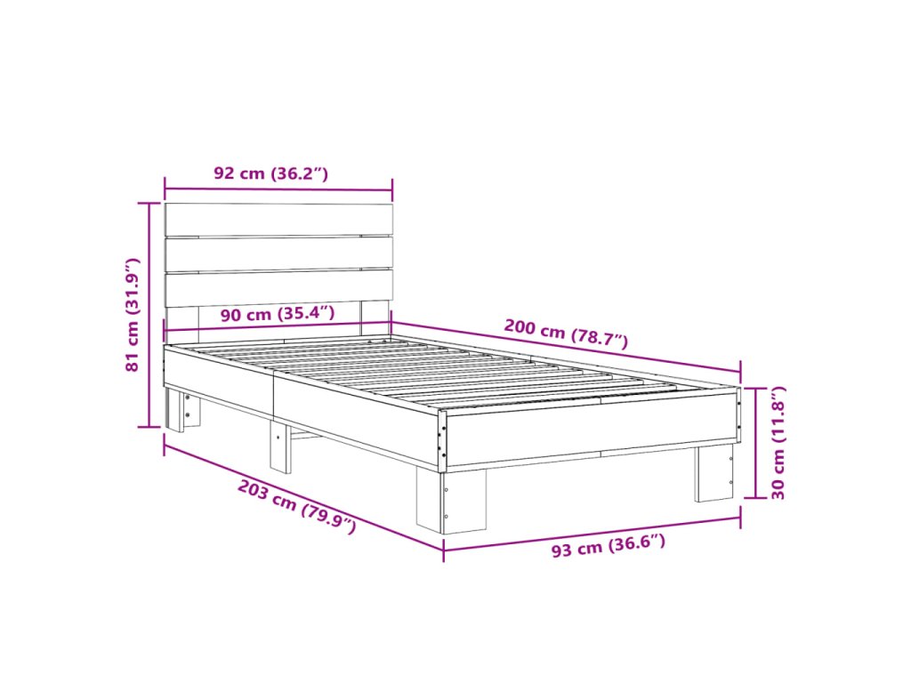Multidom Posteľný rám hnedý dub 90x200 cm kompozitné drevo a kov