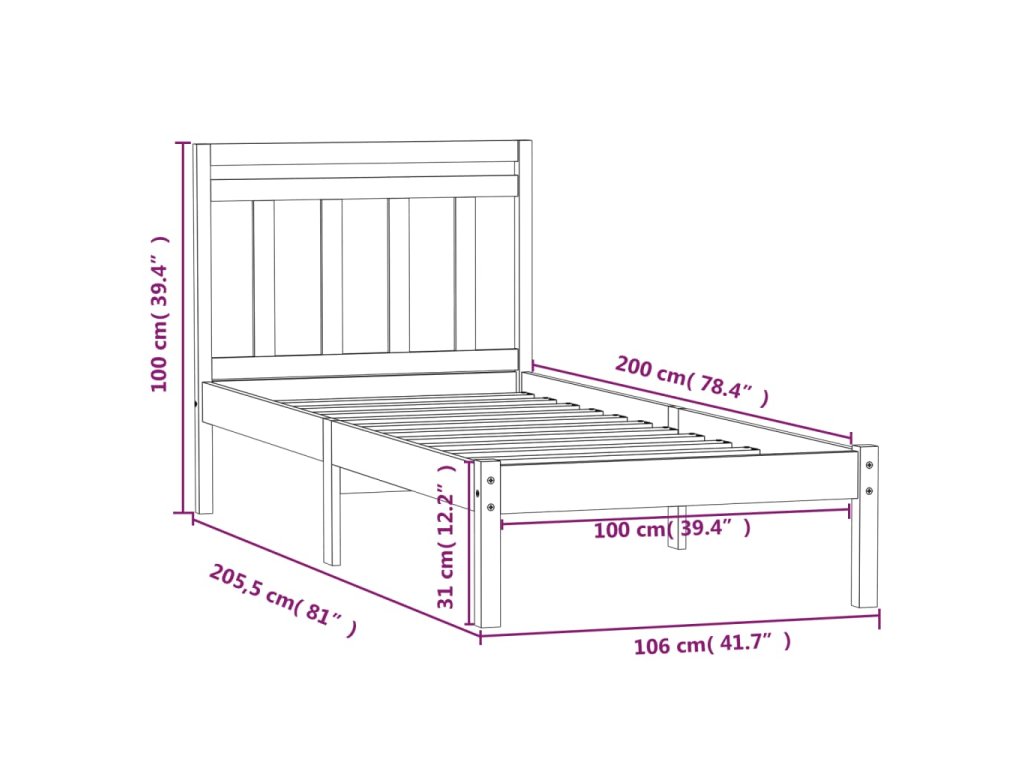 - Celkové rozmery rámu postele: 205,5 x 106 x 100 cm (D x Š x V)
