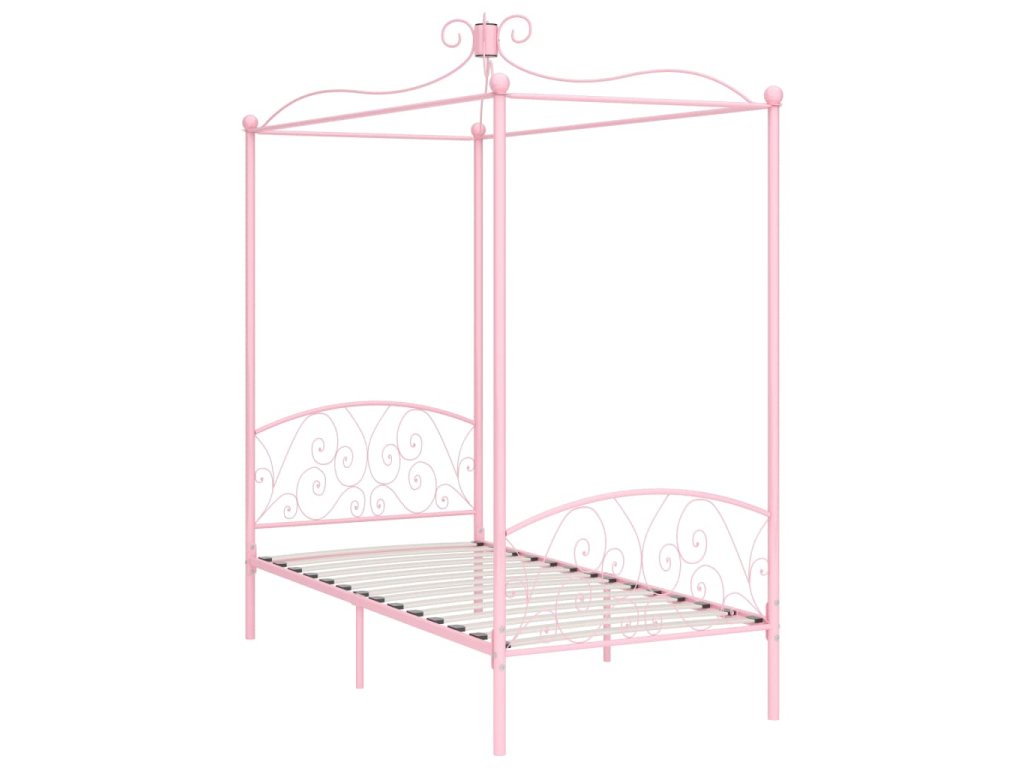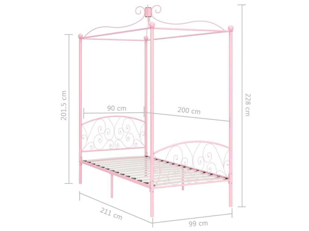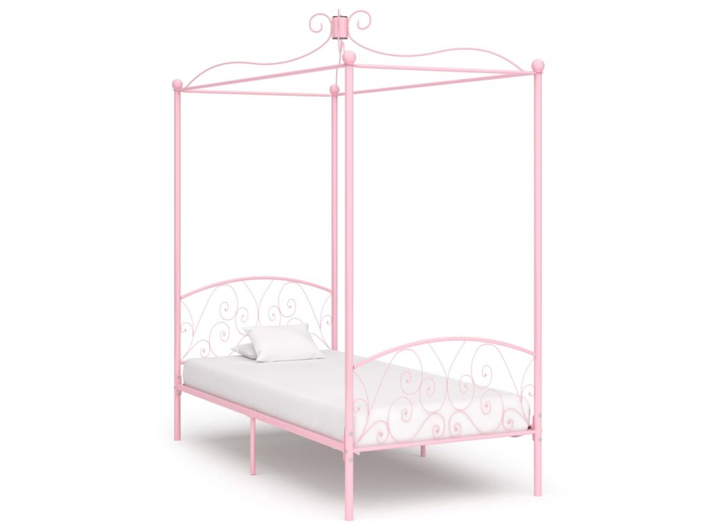 Multidom Posteľný rám s baldachýnom, ružový, kov 90x200 cm