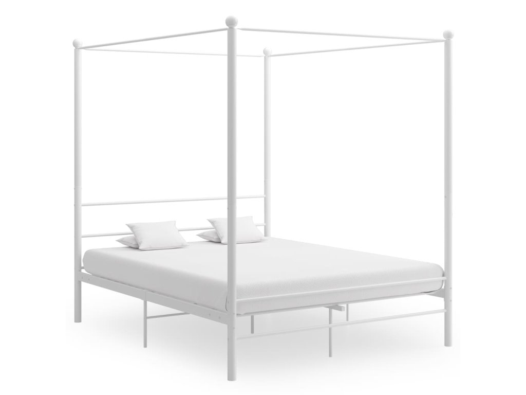 Multidom Posteľný rám s baldachýnom biely kovový 160x200 cm
