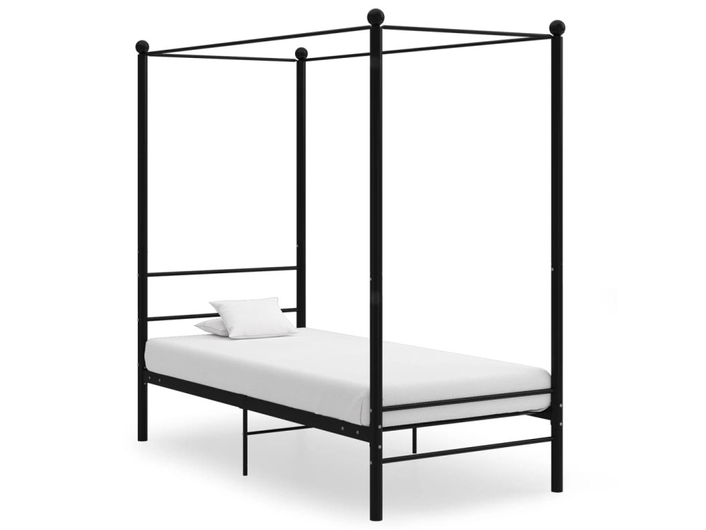 Multidom Posteľný rám s baldachýnom čierny kov 90x200 cm