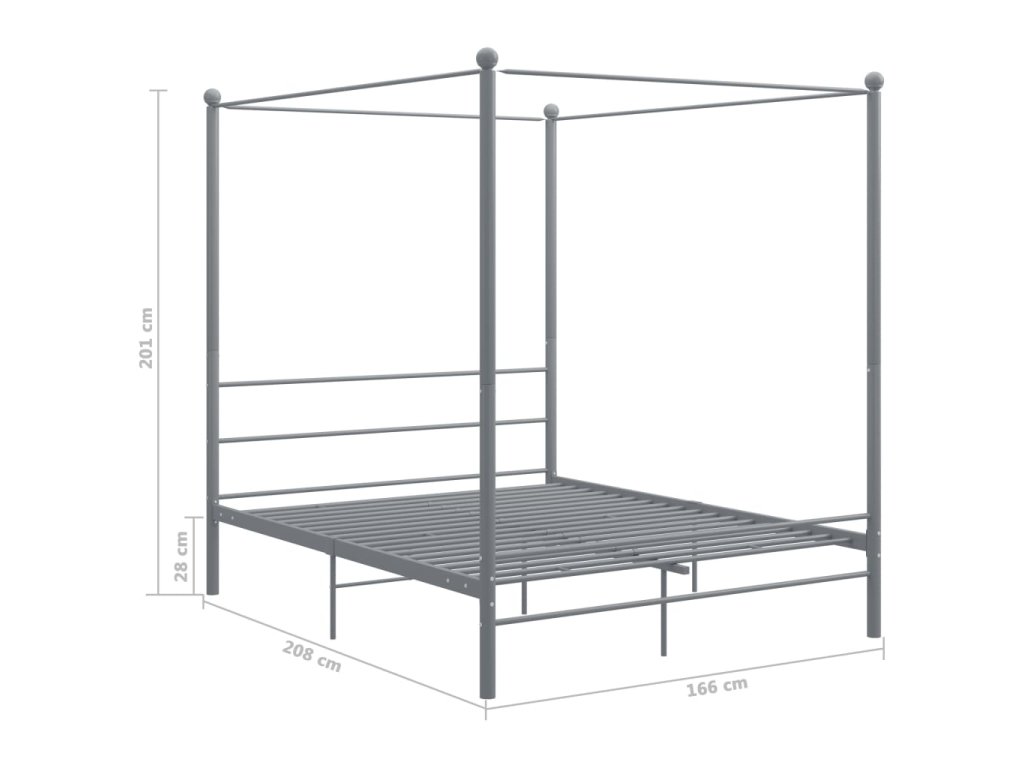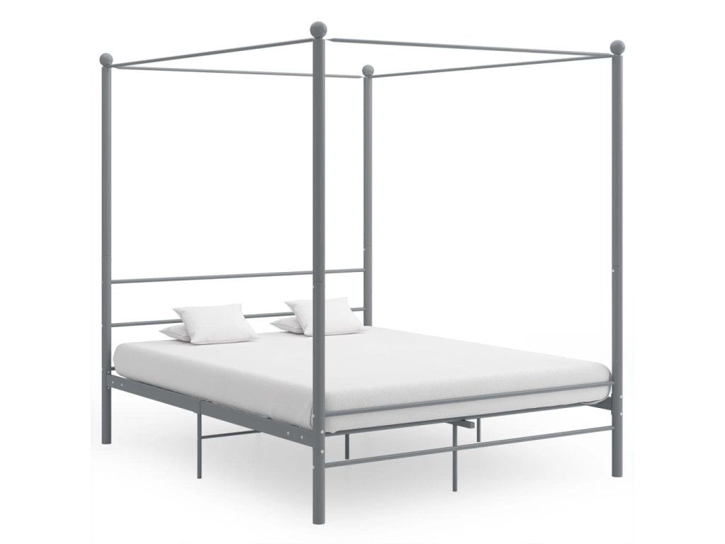 Multidom Posteľný rám s baldachýnom sivý kov 160x200 cm