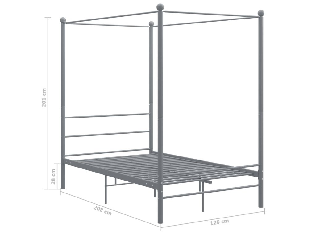 Multidom Posteľný rám s baldachýnom sivý kovový 120x200 cm