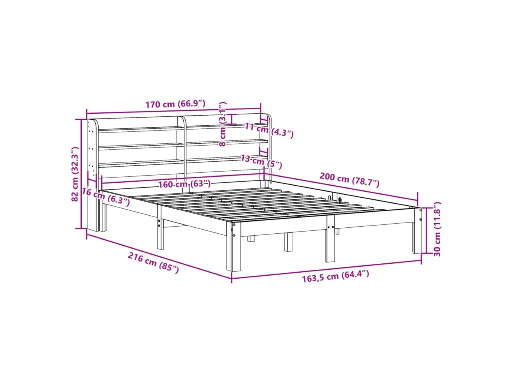Multidom Posteľný rám s čelom 160x200 cm borovicový masív
