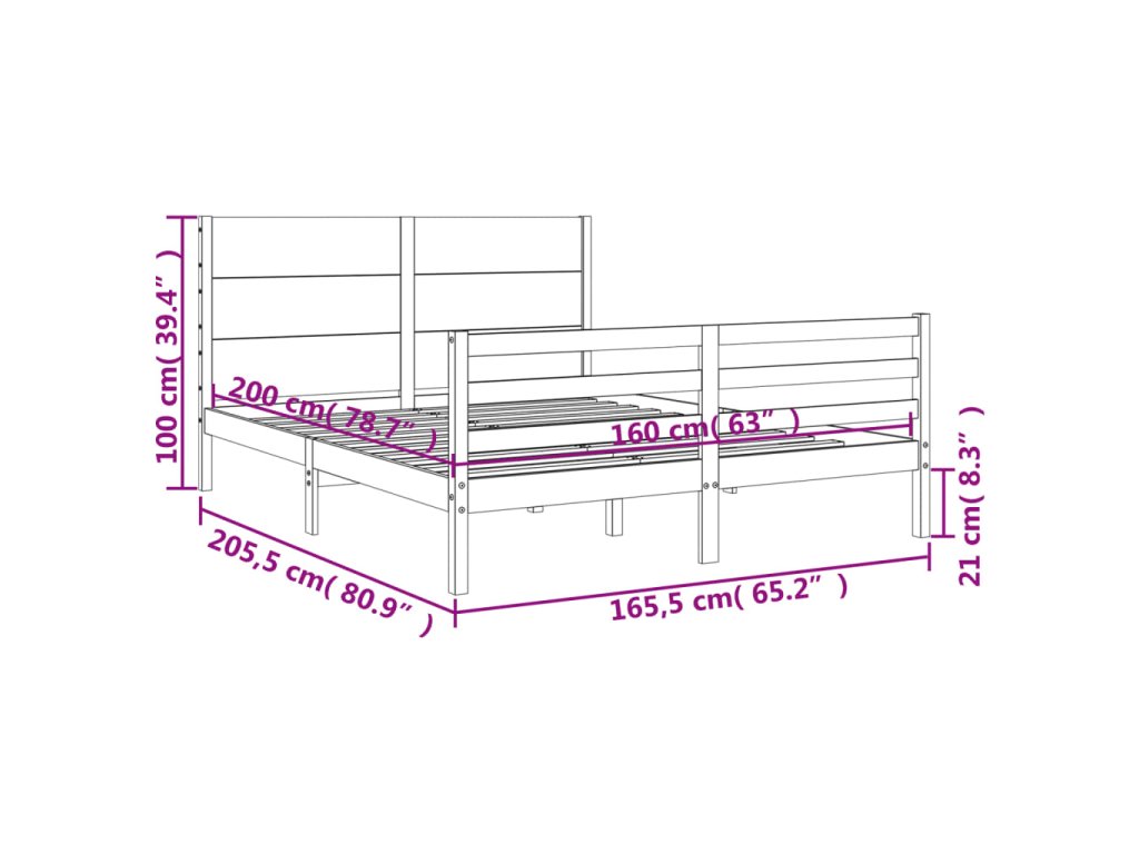 Multidom Posteľný rám s čelom 160x200 cm masívne drevo