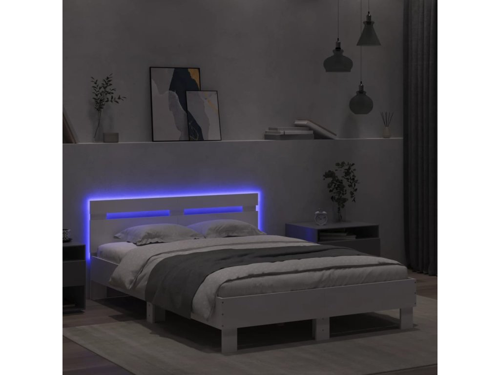 Multidom Posteľný rám s čelom a LED biely 120x200 cm