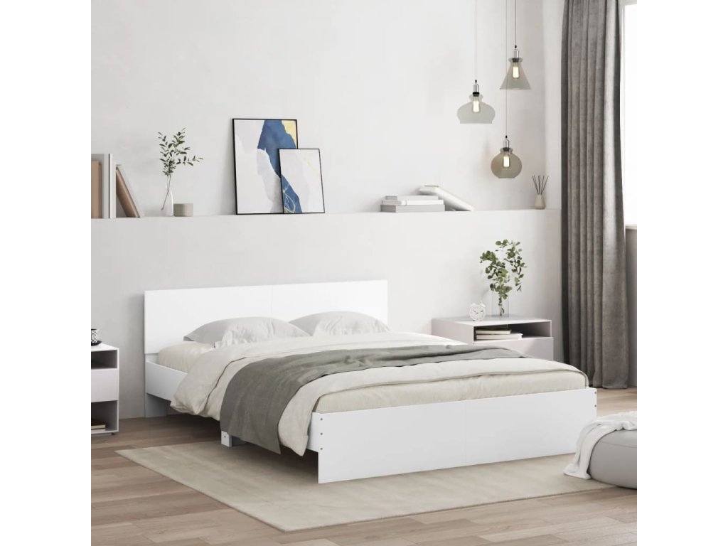 Multidom Posteľný rám s čelom a LED biely 150x200 cm