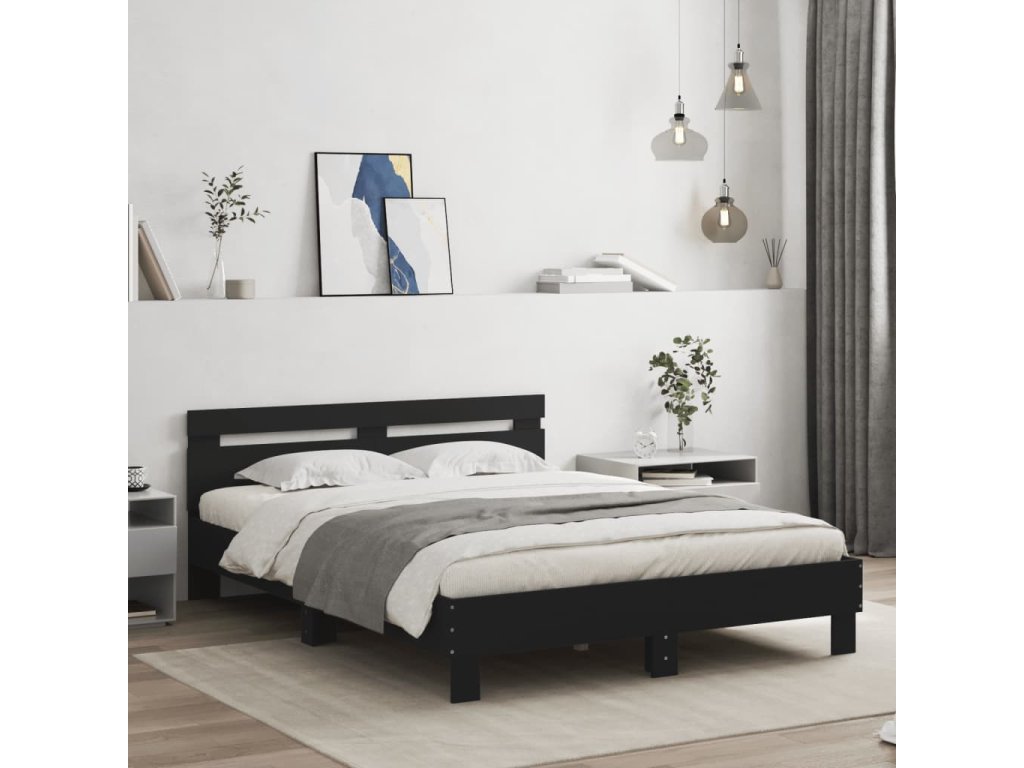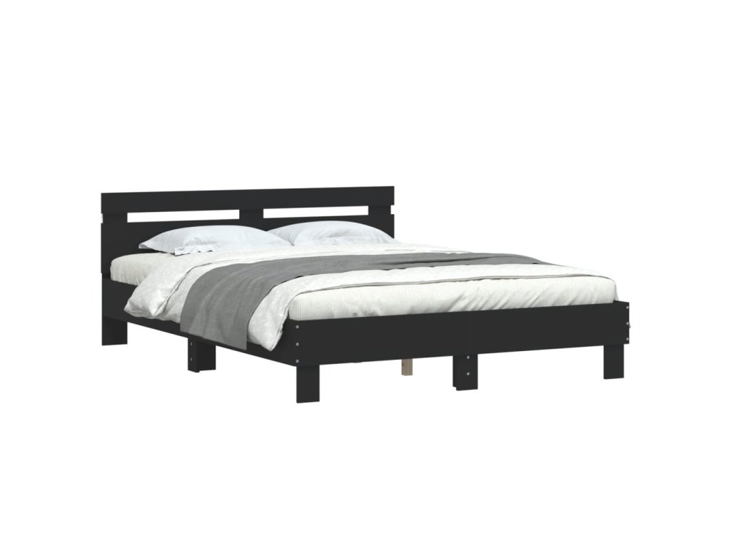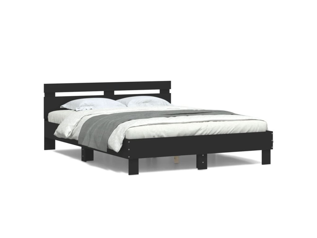 Multidom Posteľný rám s čelom a LED čierny 140x200 cm