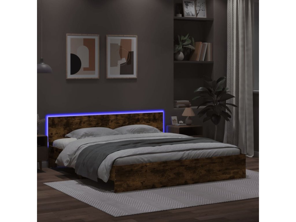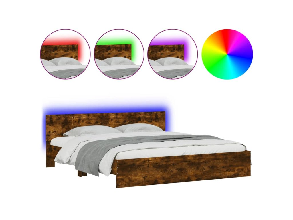 Multidom Posteľný rám s čelom a LED dymový dub 200x200 cm