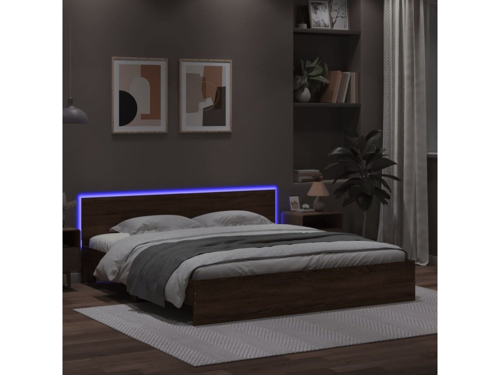 Multidom Posteľný rám s čelom a LED hnedý dub 200x200 cm