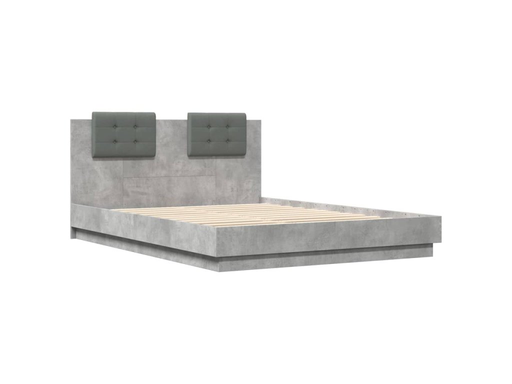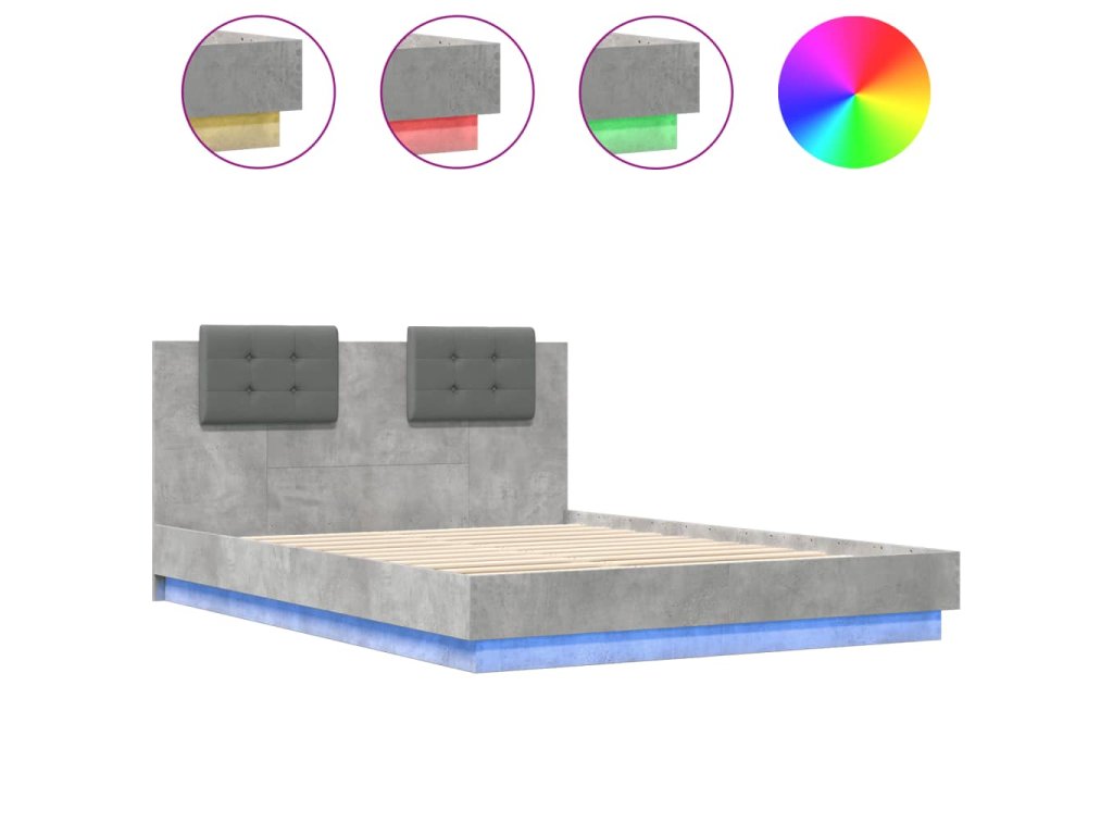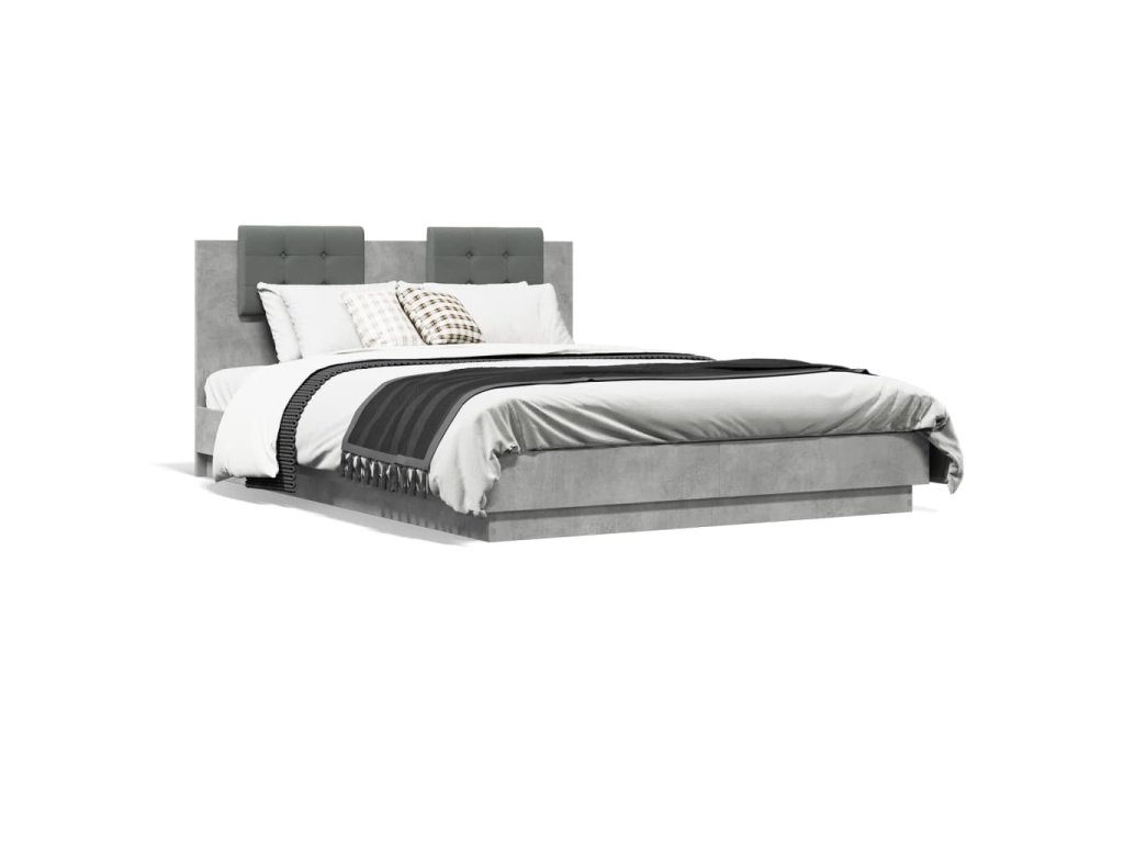 Multidom Posteľný rám s čelom a LED svetlami betónovo sivý 150x200 cm