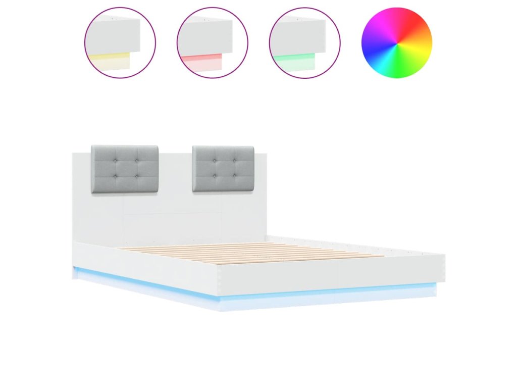 Multidom Posteľný rám s čelom a LED svetlami biely 140x190 cm