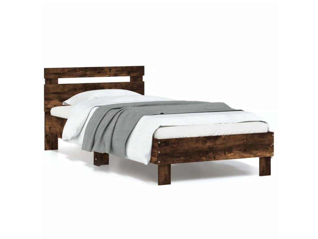 Multidom Posteľný rám s čelom a LED svetlami dymový dub 90x200 cm