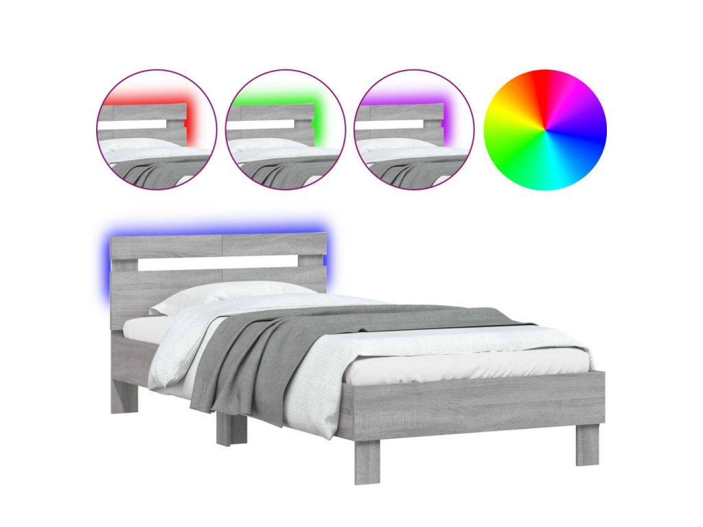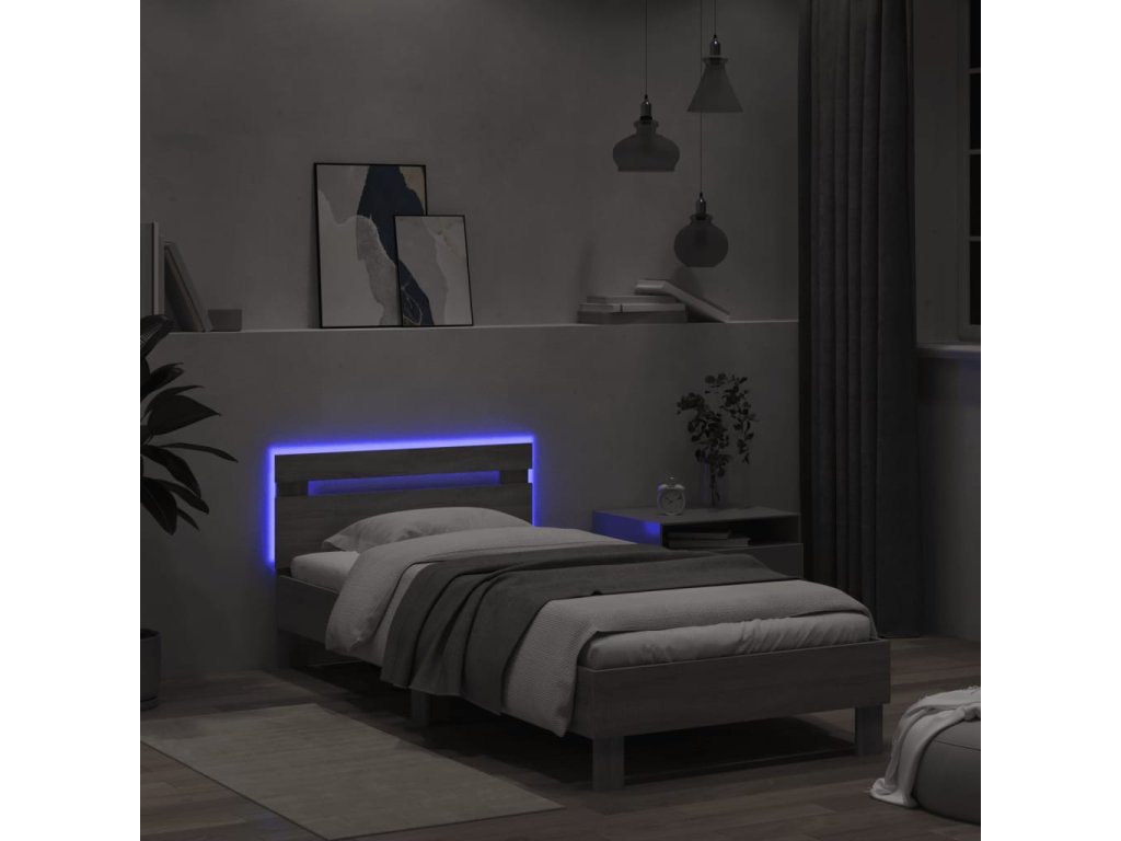 Multidom Posteľný rám s čelom a LED svetlami sivý sonoma 100x200 cm