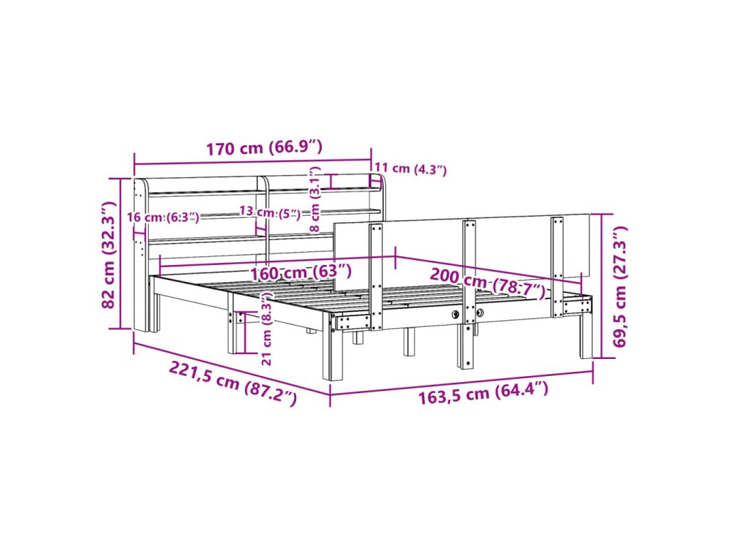 - Vhodné rozmery matraca: 160 x 200 cm (Š x D) (matrac nie je súčasťou balenia)