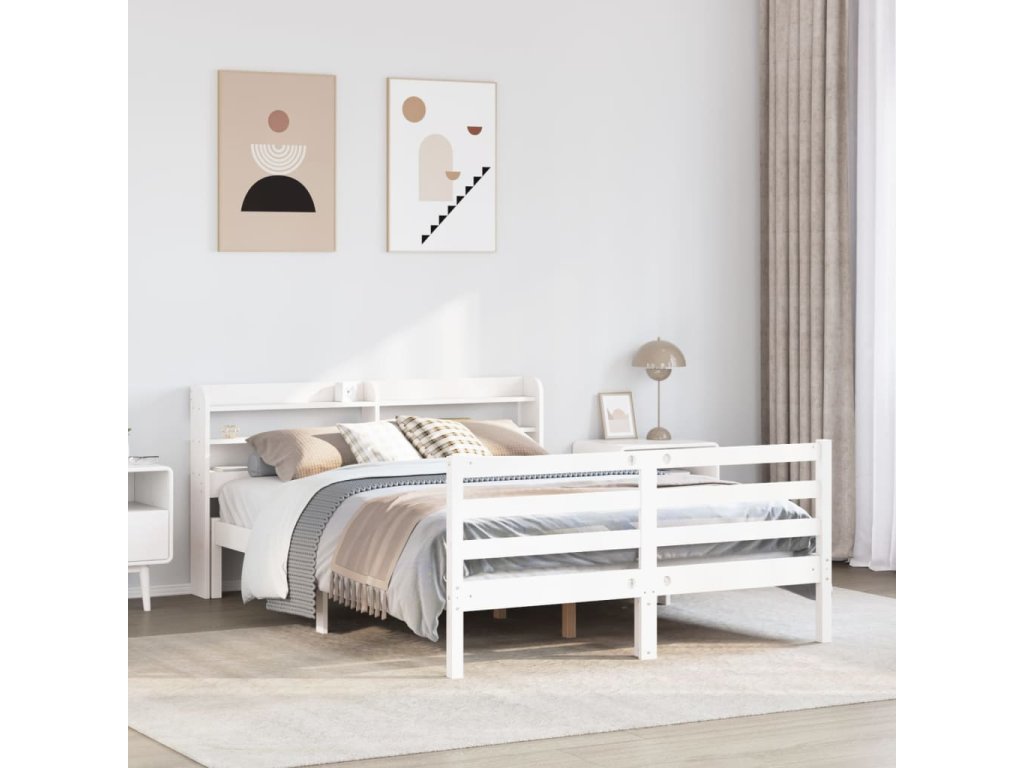 Multidom Posteľný rám s čelom biely 135x190 cm borovicový masív