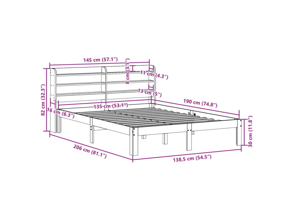 - Vhodné rozmery matraca: 135 x 190 cm (Š x D) (matrac nie je súčasťou balenia)
