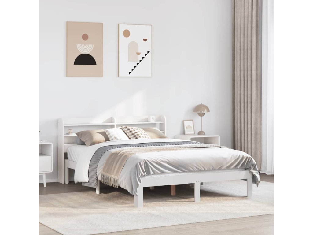 Multidom Posteľný rám s čelom biely 135x190 cm borovicový masív