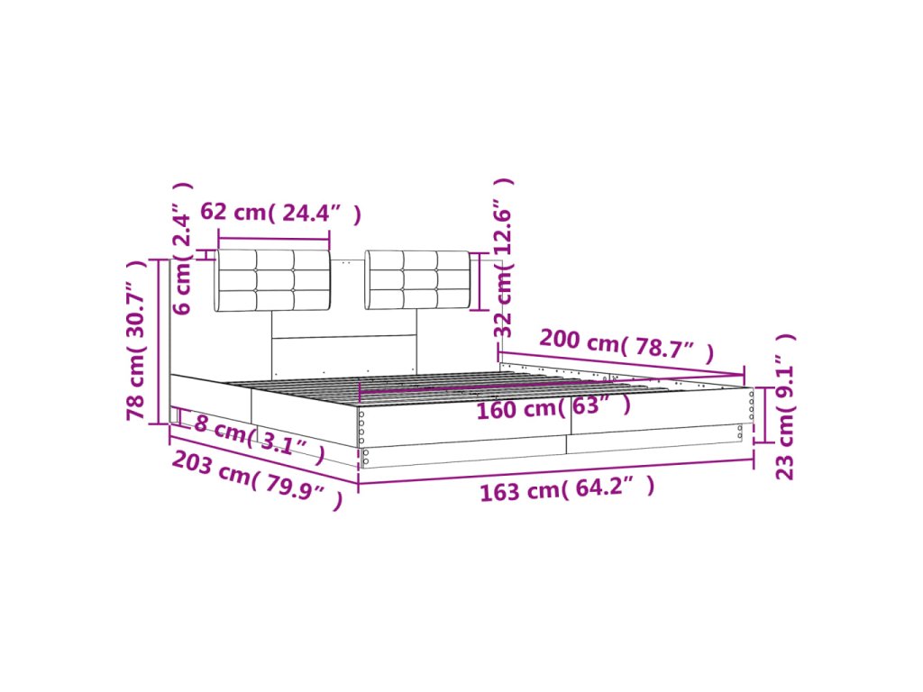 - Vhodné rozmery matraca: 160 x 200 cm (Š x D) (matrac nie je súčasťou balenia)