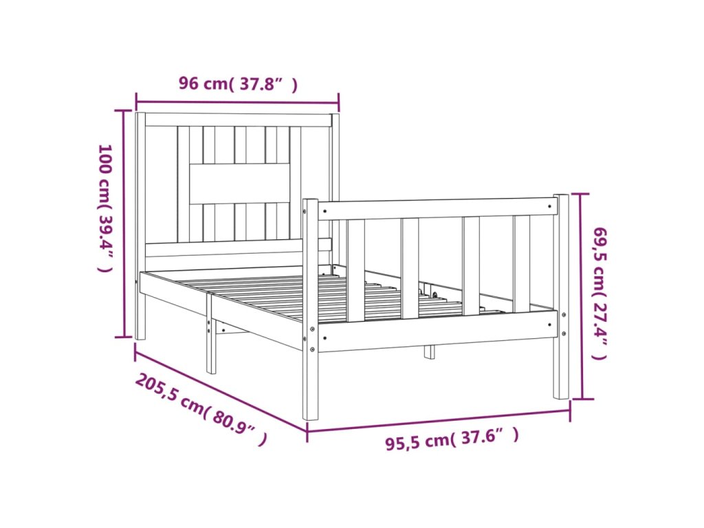 - Rozmery rámu postele: 205,5 x 95,5 x 69,5 cm (D x Š x V)