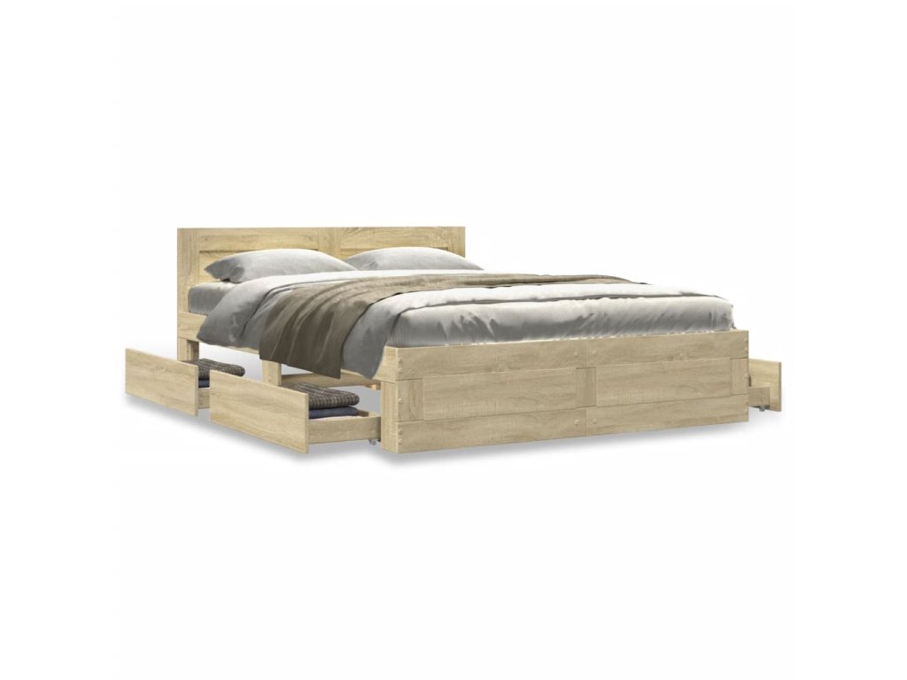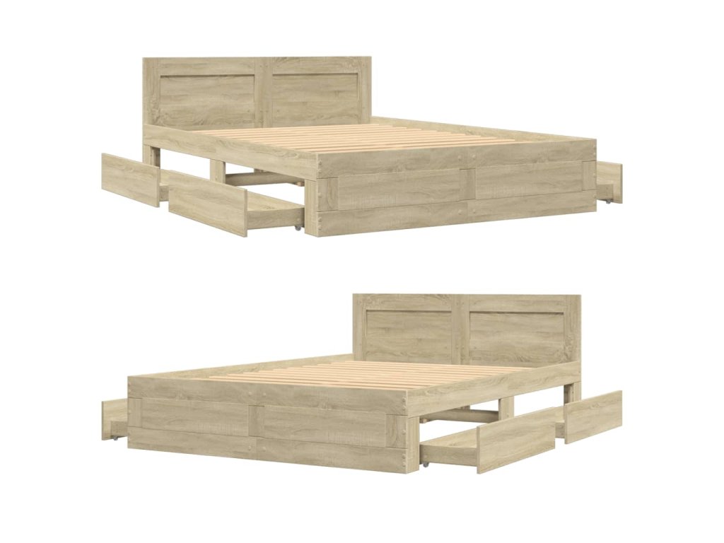 Multidom Posteľný rám s čelom dub sonoma 135x190 cm kompozitné drevo