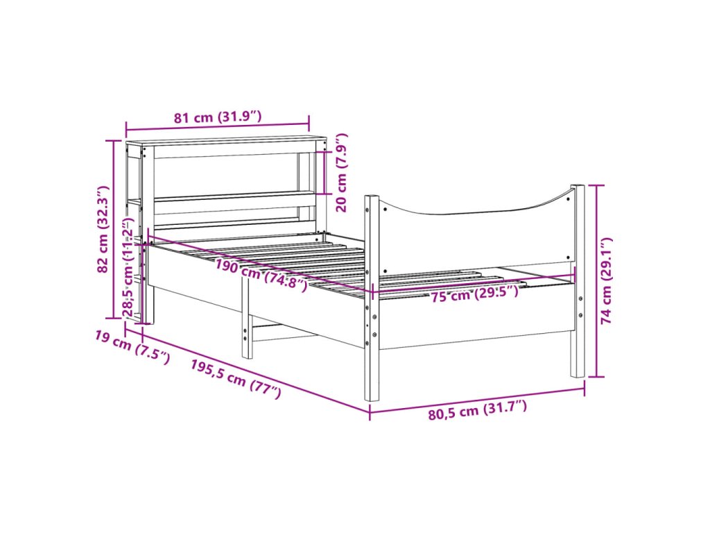 - Vhodné rozmery matraca: 75 x 190 cm (Š x D) (matrac nie je súčasťou balenia)