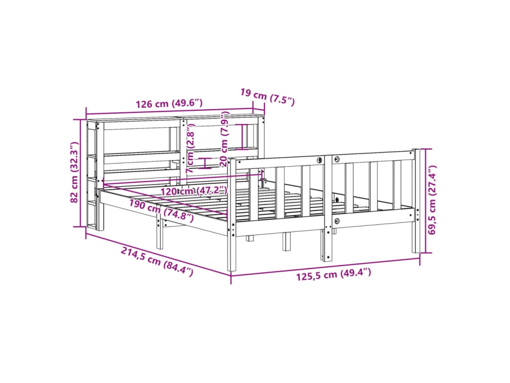Multidom Posteľný rám s čelom voskový hnedý 120x190 cm borovicový masív