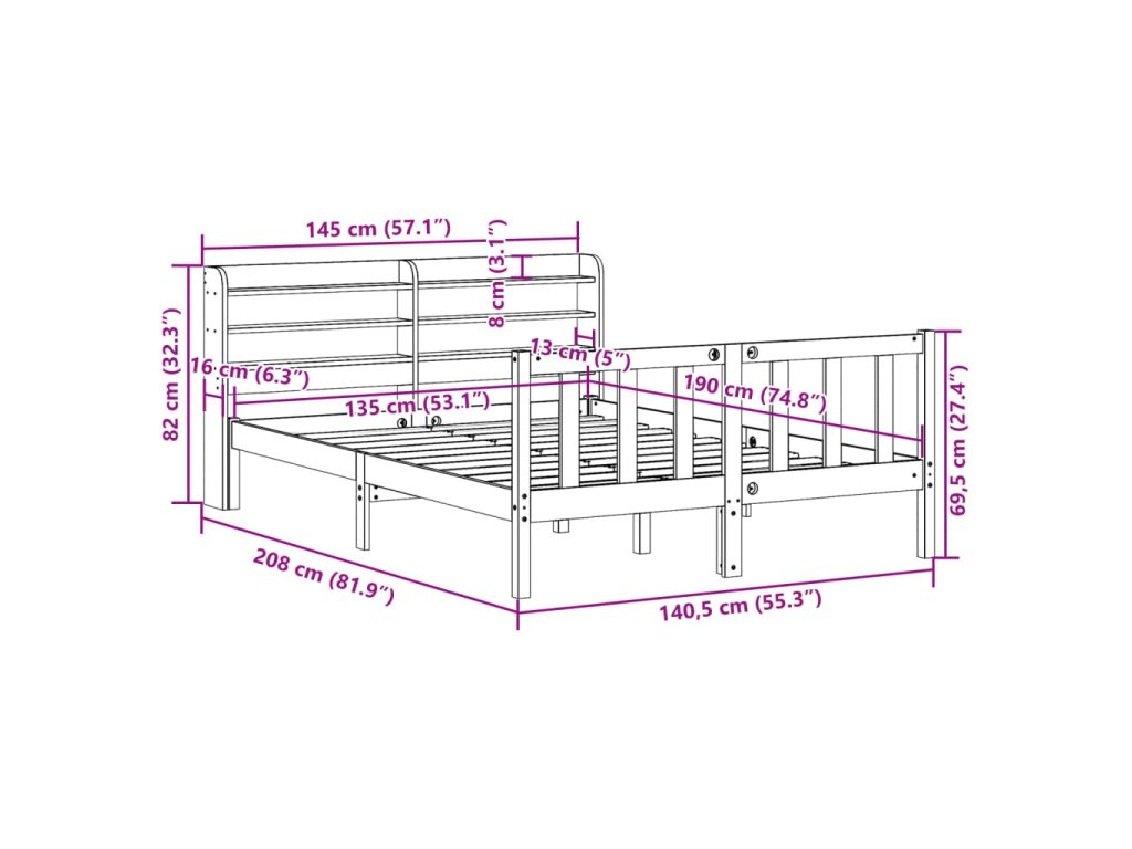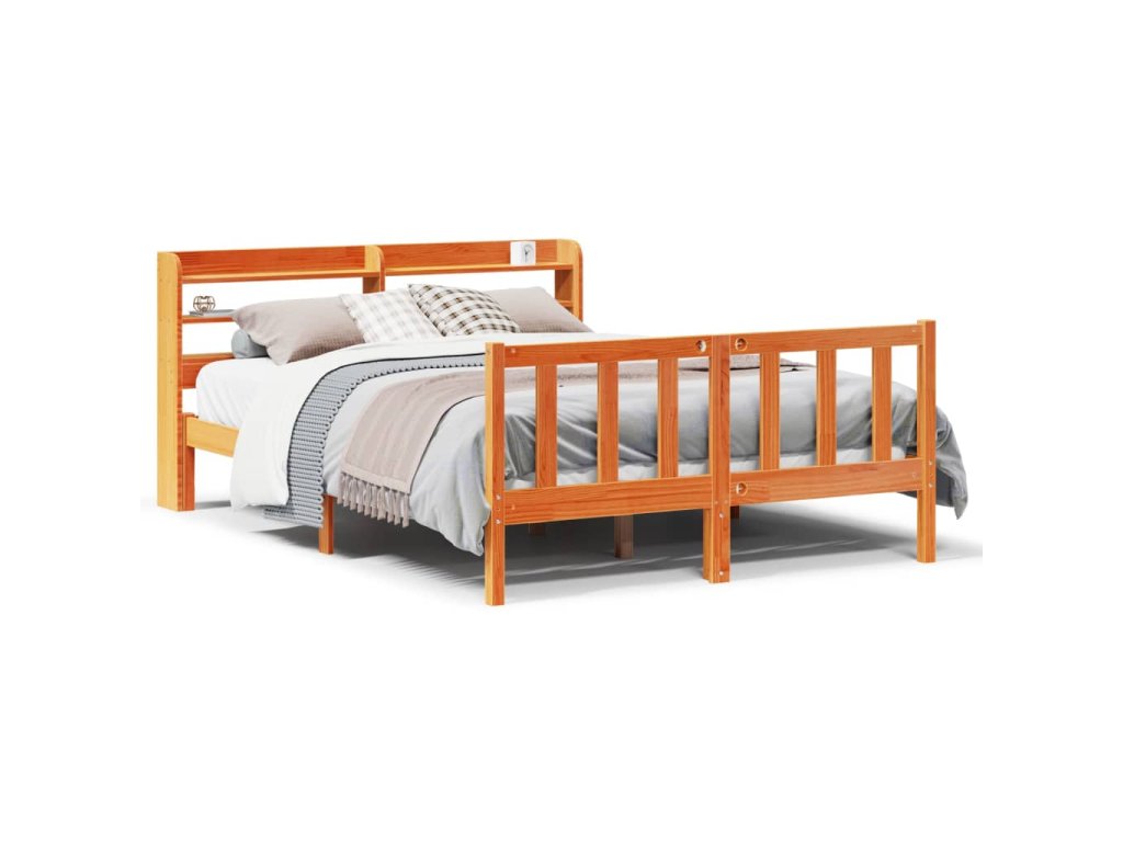 Multidom Posteľný rám s čelom voskový hnedý 135x190 cm borovicový masív