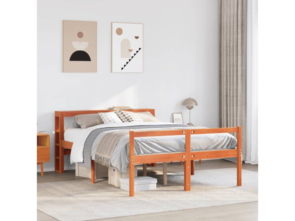 Multidom Posteľný rám s čelom voskový hnedý 150x200 cm borovicový masív