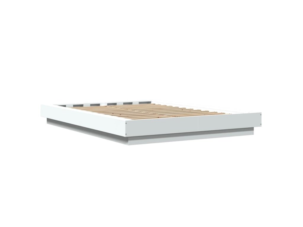 Multidom Posteľný rám s LED svetlami biely 135x190 cm kompoz. drevo
