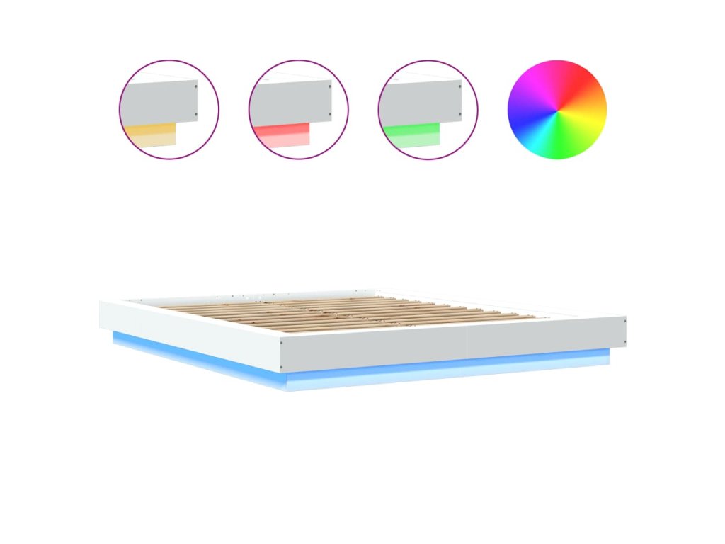Multidom Posteľný rám s LED svetlami biely 150x200 cm kompozitné drevo