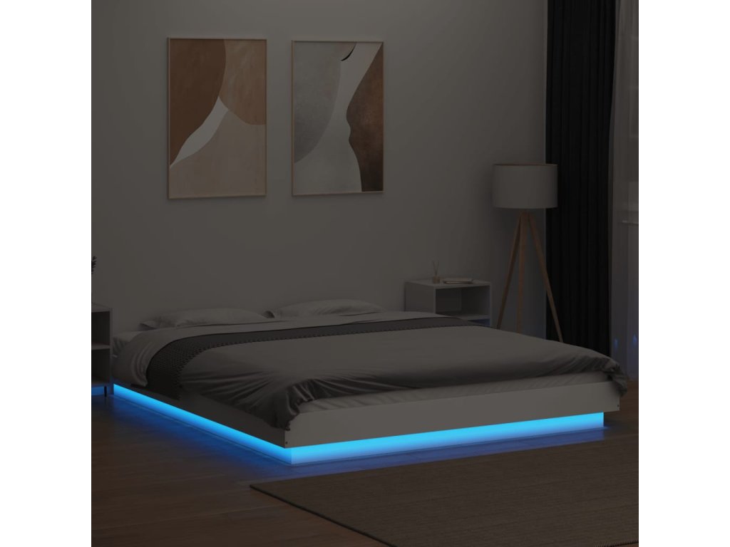 Multidom Posteľný rám s LED svetlami biely 160x200 cm kompozitné drevo